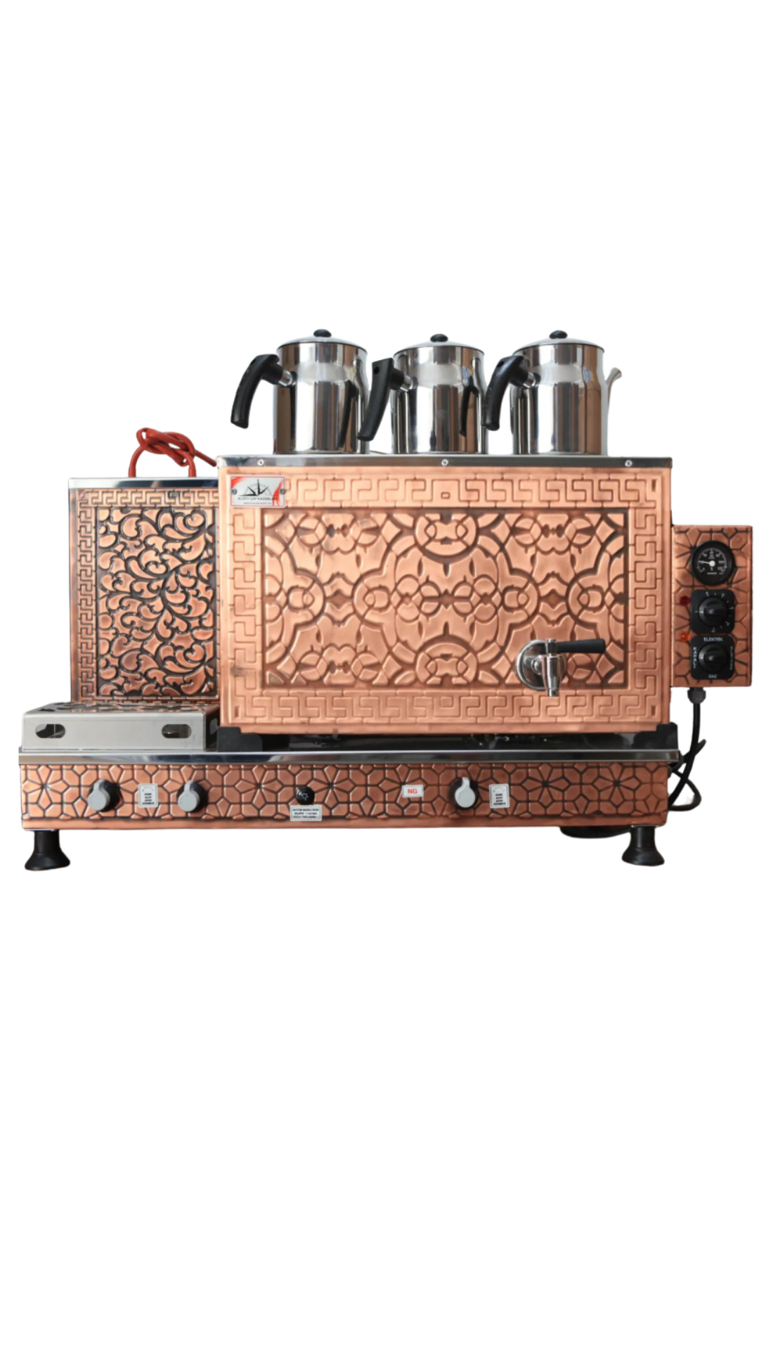 Çay Kazanı Kuzey 3’lü Bakır Turbo Elektrikli Gazlı – Endüstriyel Profesyonel Çay Makinesi